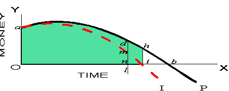 Even if the new curve P passed through b, the new position of I would practically mean its intersection with OX to the left of i because of the enhanced value of leisure. Further L, though it might rise higher than before, would probably descend sooner and at least as steeply. It is to be observed in addition that but for interest, rent and heavy depreciation charges, industrial progress would bring about movements of P involving more considerable augmentation of the area contained between P and the co-ordinate axes.